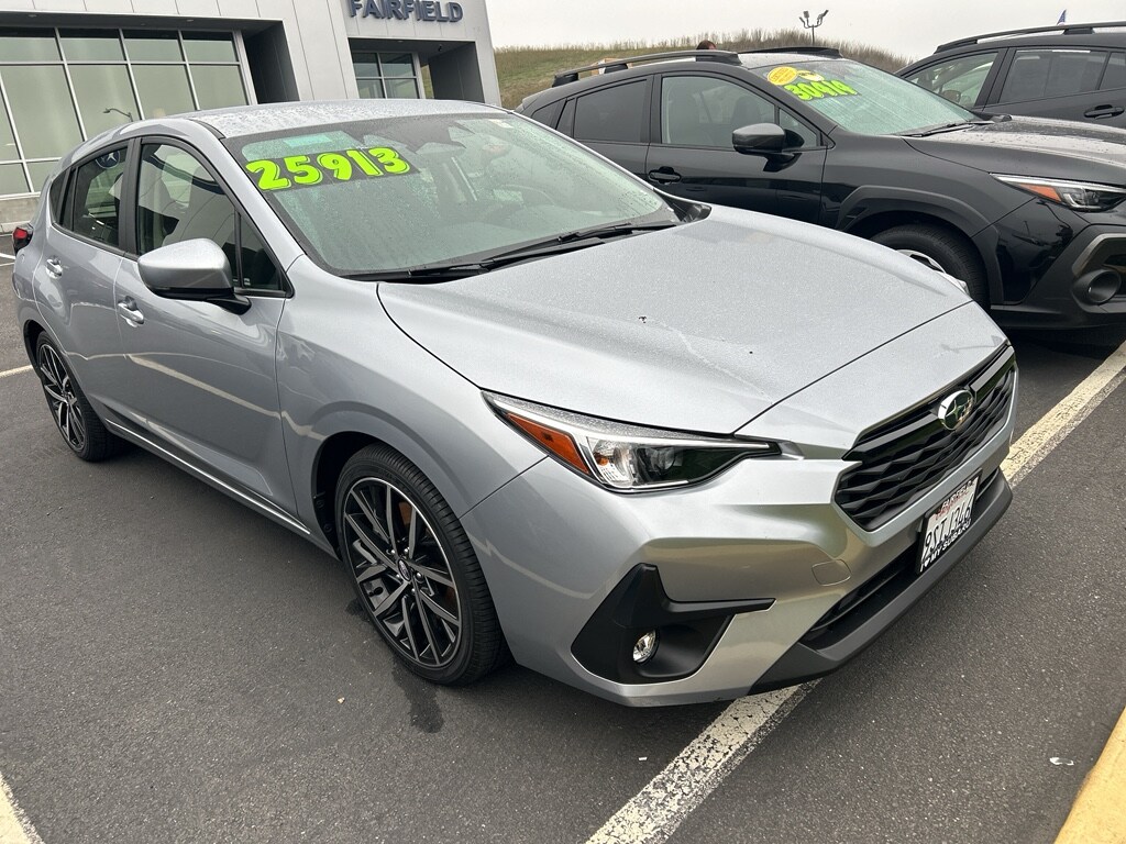 2025 Subaru Impreza Sport â" Certified Pre-Owned, AWD, Low Mileage This 2025 Subaru Impreza Sport is a certified pre-owned gem located in Fairfield, CA, offering exceptional value with the best price in the area. With only 3,630 miles, this low-mileage compact delivers Subaru's renowned all-wheel-drive confidence and a fuel-efficient 4-cylinder, 2.0L gasoline engineâ"perfect for commuting, weekend escapes, and California roads. Comfort and convenience come standard with Apple CarPlay for seamless smartphone integration and XM Radio for endless entertainment on the go. Adaptive Cruise Control and Lane Keep Assist enhance highway comfort and safety, making longer drives less stressful while maintaining vigilance on busy streets. The CARFAX Clean Report confirms the vehicle's clean history, giving you added peace of mind that this Subaru Impreza has been well cared for. Sport styling and responsive handling blend with practical features to create a versatile daily driver. The certified pre-owned status means the vehicle has passed a rigorous inspection and includes additional warranty coverage, elevating reliability beyond a typical pre-owned car purchase. Located in Fairfield, CA, this Subaru Impreza Sport represents an outstanding combination of low mileage, advanced safety tech, and affordable pricing. Stop by for a test drive or contact us to learn how to take advantage of the best-priced certified 2025 Subaru Impreza Sport in the region.